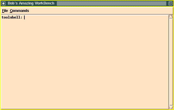 When the user press return, the tool shell sends the command to supreme to be executed. Since we only have a prototype, the only things the supreme shell does are syntax checking, as well as displaying the parameters that it had received in its window.